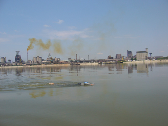 September 15, 2013550 × 413Danube Photos Leave a trackback Swimming past Turnu Magurele, Romania, an industrial port with a large fertilizer plant pouring acrid fumes into the air and dumping toxic-looking waste into the river. Like Loading... More from this gallery